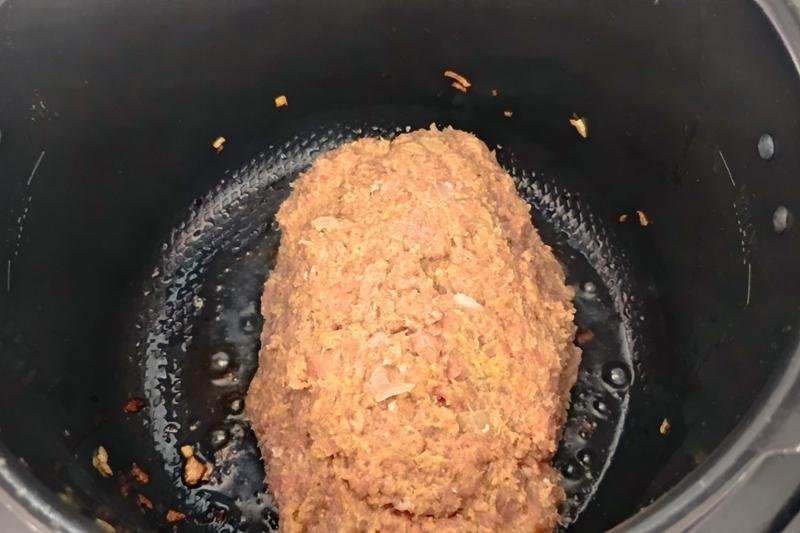 KROK 5: Mäso vložte do hrnca, podlejte trochou vody a nasaďte pokrievku Extra Crisp Lid. Zvoľte program 1. na 40 minút. V priebehu pečenia kontrolujte a prípadne dolejte vodu.